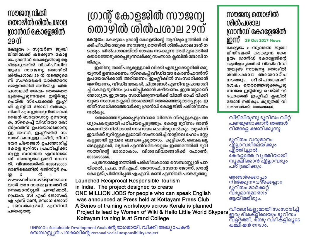 Recently, we announced this project at a Press Meeting at Kottayam. Media gave this project a very good coverage, as the project is designed with ecology and economy in focus - as one of UNESCO's Sustainable Development Goals.